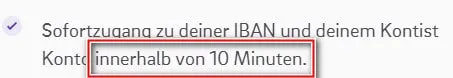 Kontist wirbt damit, dass die Kontoeröffnung 10 Minuten dauert: